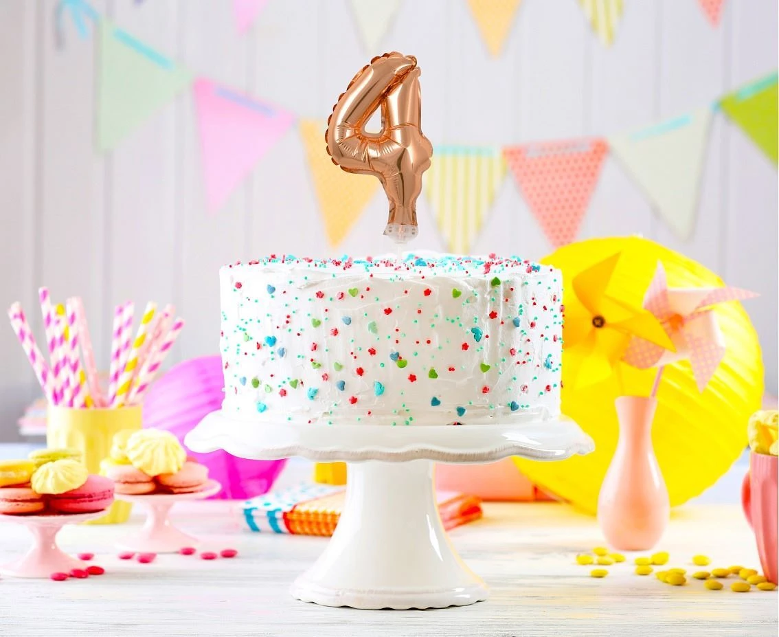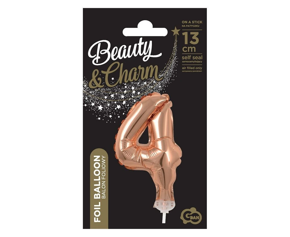 Balón foliový číslice - 4 - RŮŽOVO ZLATÁ - ROSE GOLD 12,5 cm s držákem