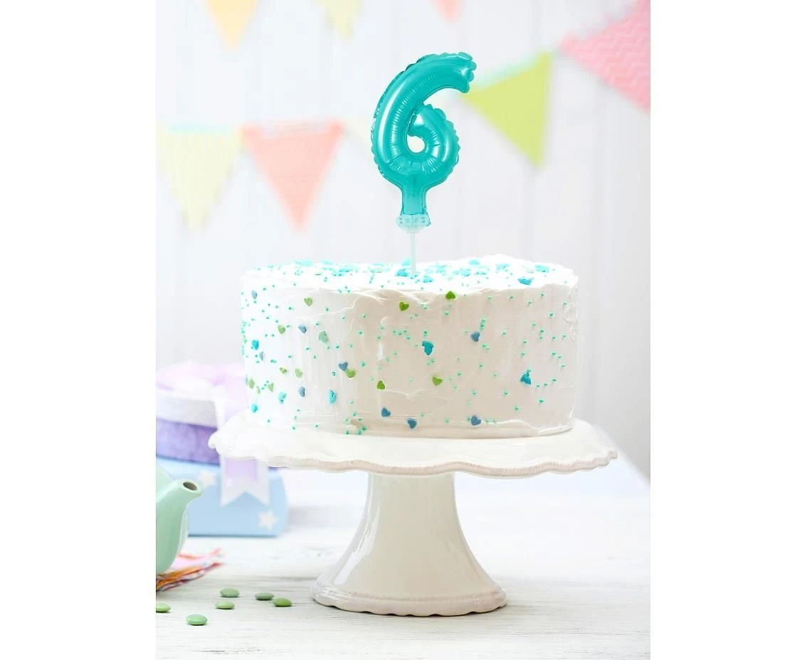 Balón foliový číslice - 6 - SVĚTLE MODRÁ 12,5 cm s držákem
