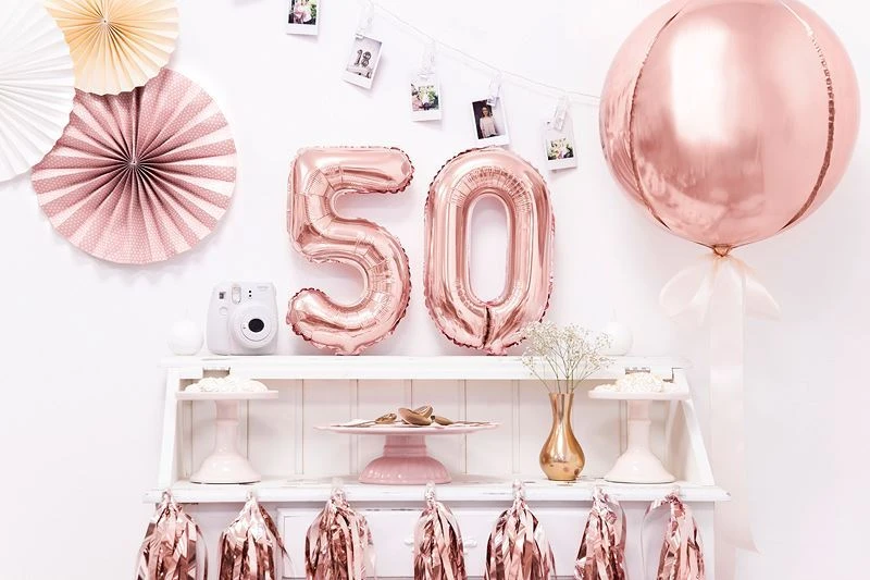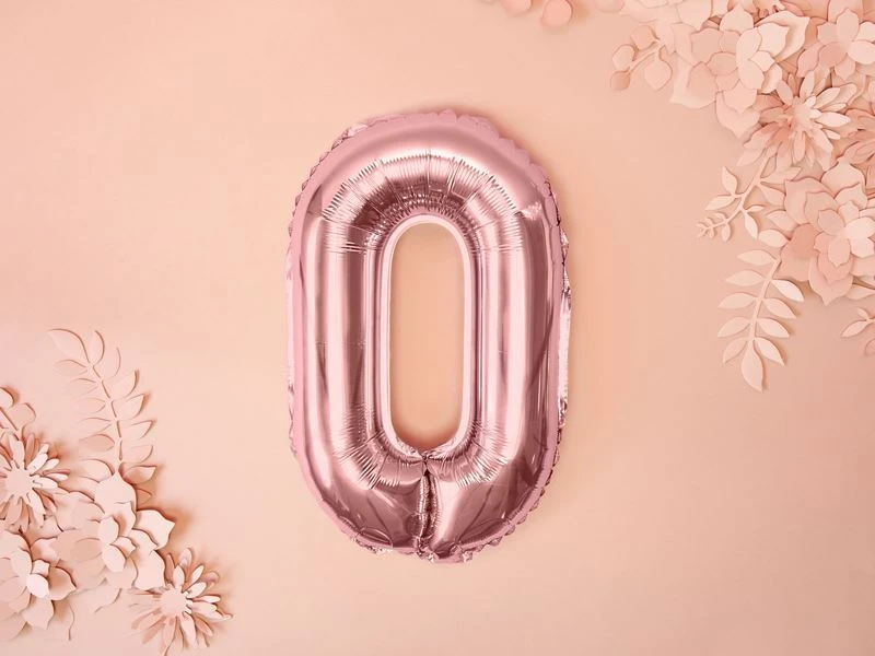 Balón foliový číslice RŮŽOVO ZLATÁ - ROSE GOLD 35 cm - 0 ( NELZE PLNIT HELIEM )