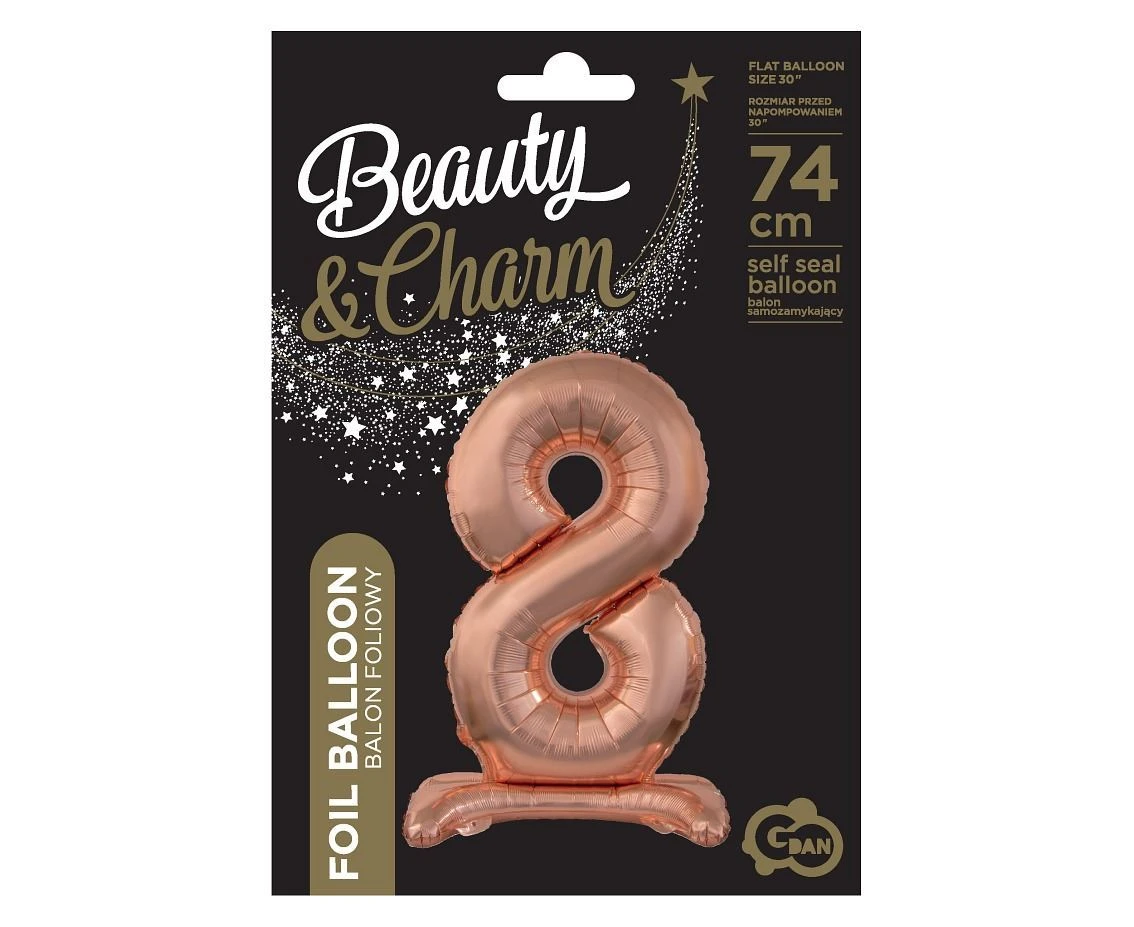 Balón foliový číslice RŮŽOVO ZLATÁ / ROSE GOLD na podstavci, 74 cm - 8