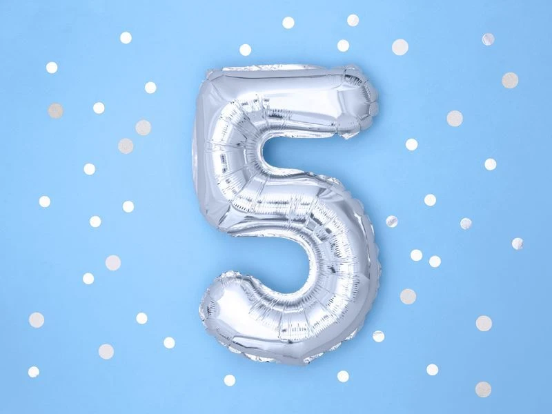 Balón foliový číslice STŘÍBRNÁ 35 cm -5 ( NELZE PLNIT HELIEM )