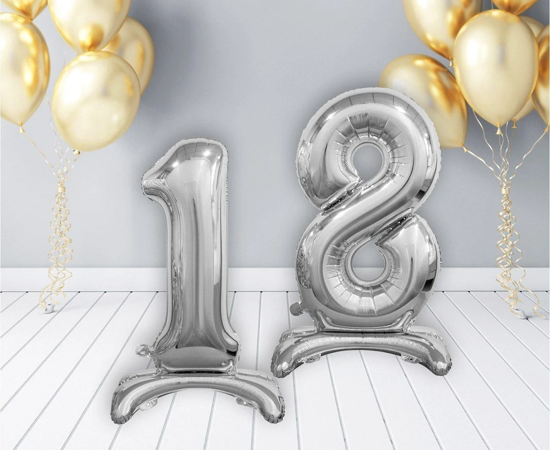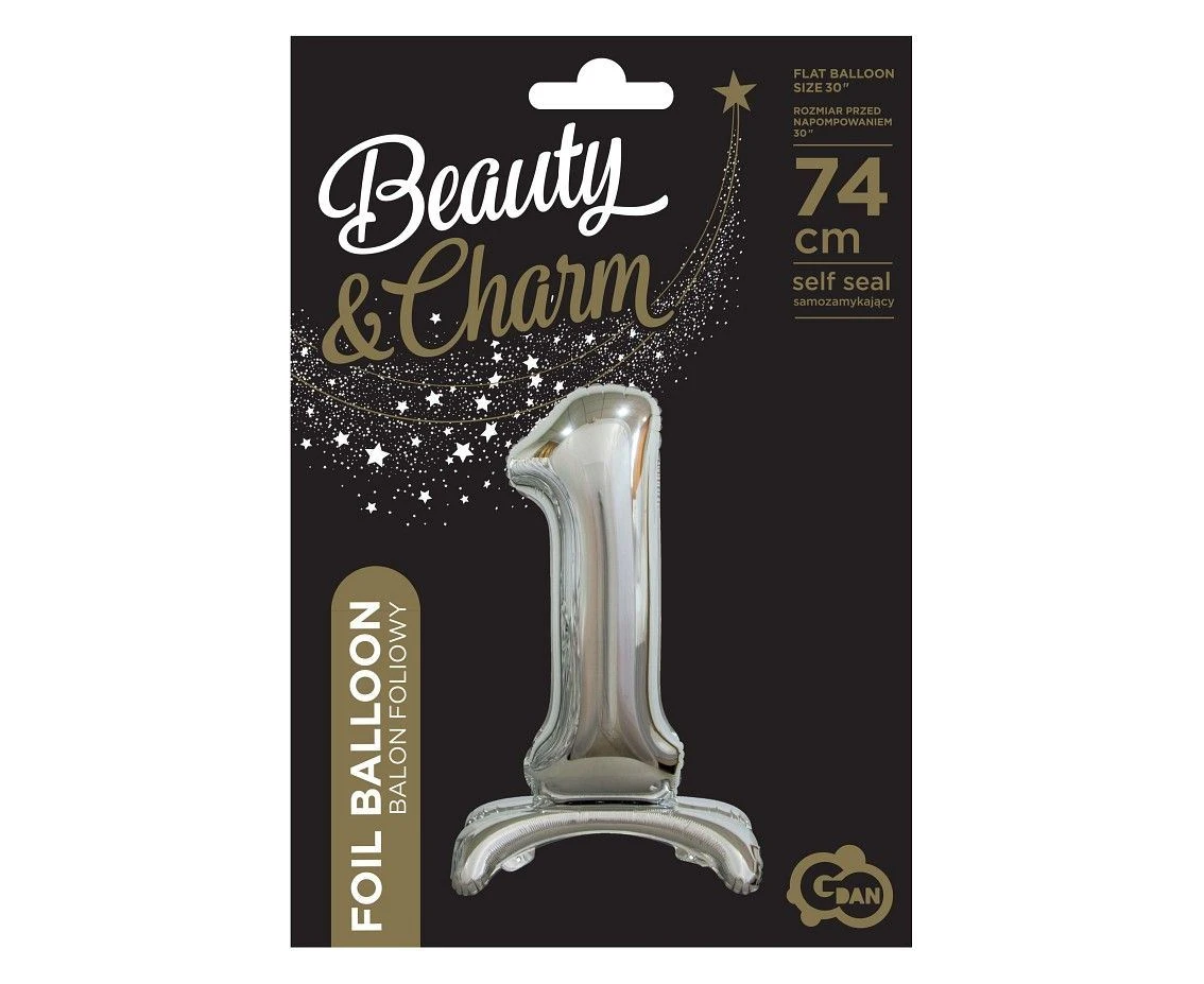Balón foliový číslice STŘIBRNÁ na podstavci , 74 cm - 1