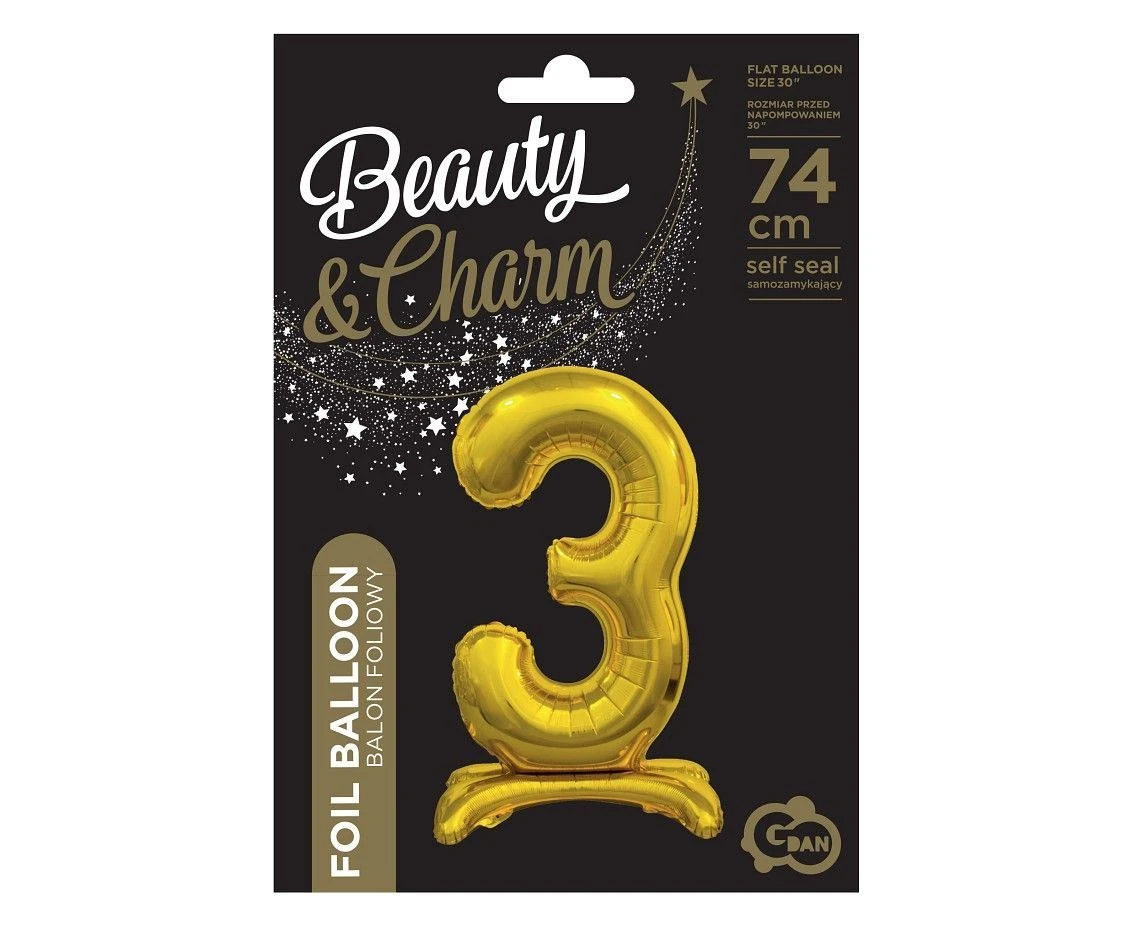 Balón foliový číslice ZLATÁ na podstavci , 74 cm - 3