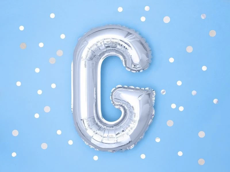 Balón foliový písmeno "G", 35cm, STŘÍBRNÝ (NELZE PLNIT HELIEM)