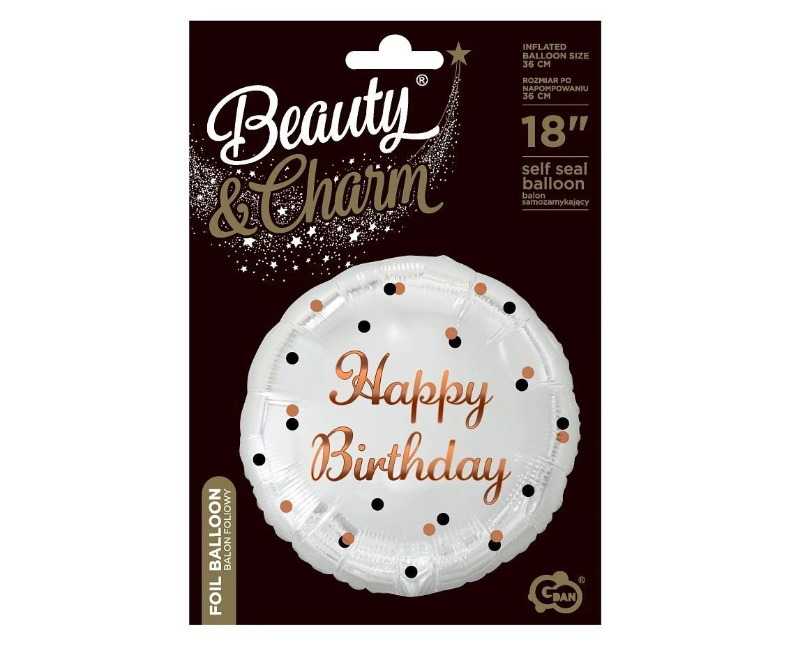 Fóliový balónek bílý Happy Birthday - narozeniny - zlatý nápis - 45 cm
