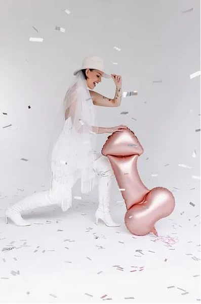 Dotaz k produktu - Foliový balónek Penis - rozlučka se svobodou - rosegold - 70 cm