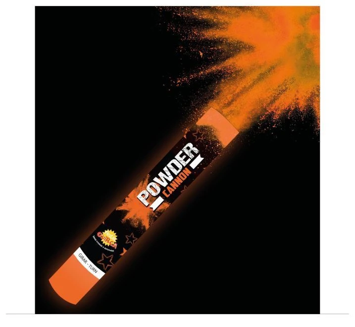 Po vystřelení vyletí oranžový prášek do výšky 5 až 8 metrů a rozptýlí se do okolí.