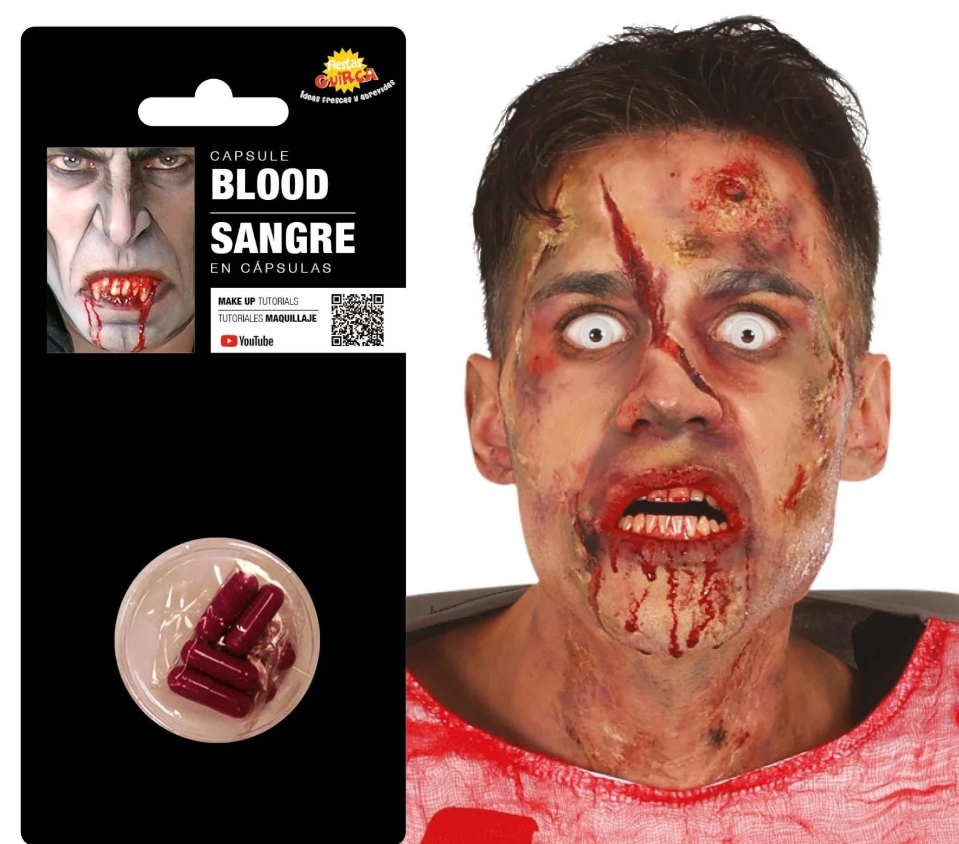 Pořádáte halloweeenskou párty? Může se vám hodit tato kapsle. Jde o červenou pilulku, která se nechá rozpustit v ústech ,kapsle poté zabarví sliny na krvavo. Kapsle je skvělým doplňkem na Halloween nebo podobně hororově tematizovanou oslavu.