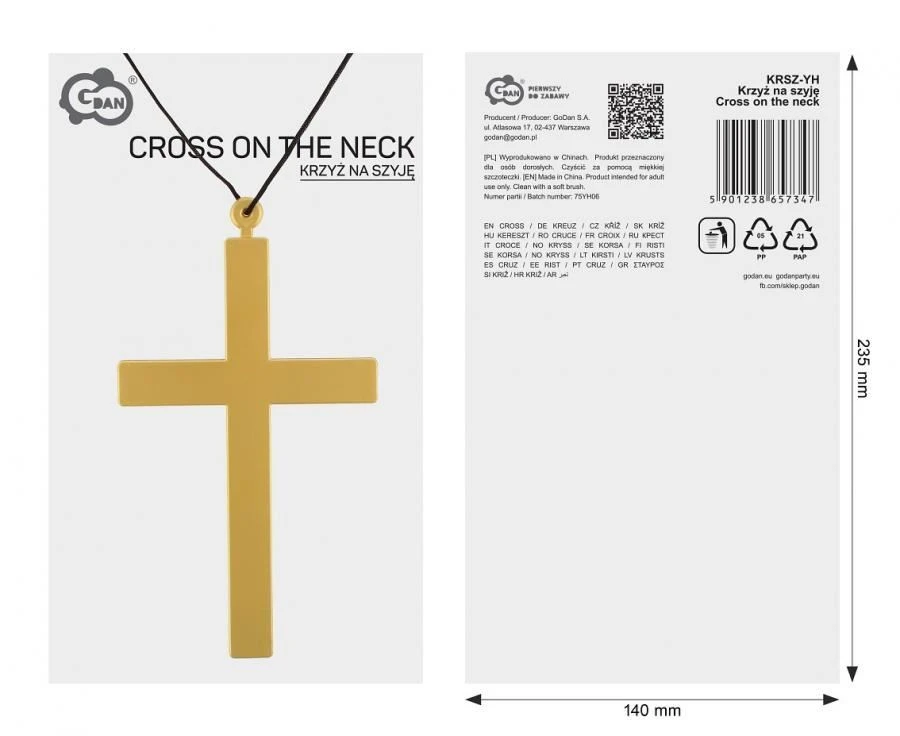 Kříž na černé šňůrce je ideálním doplňkem ke kostýmu mnicha, jeptišky, Marie, Josefa nebo Kněze.