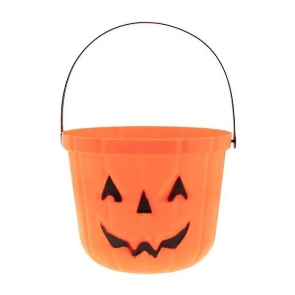 Roztomilý kyblík se používá na Halloween pro ukládání cukrovinek a jiných dobrot.