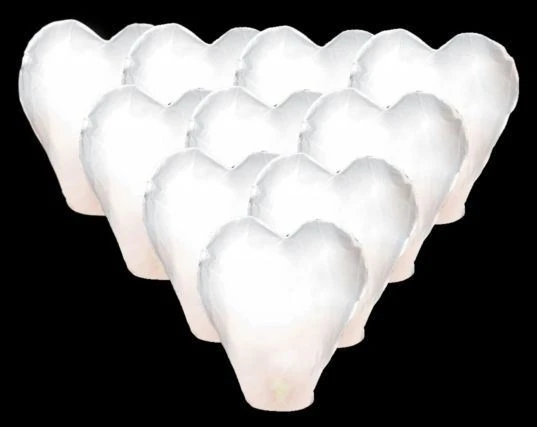 Sada obsahuje 10 ks lampionů tvaru srdce v bílé barvě.