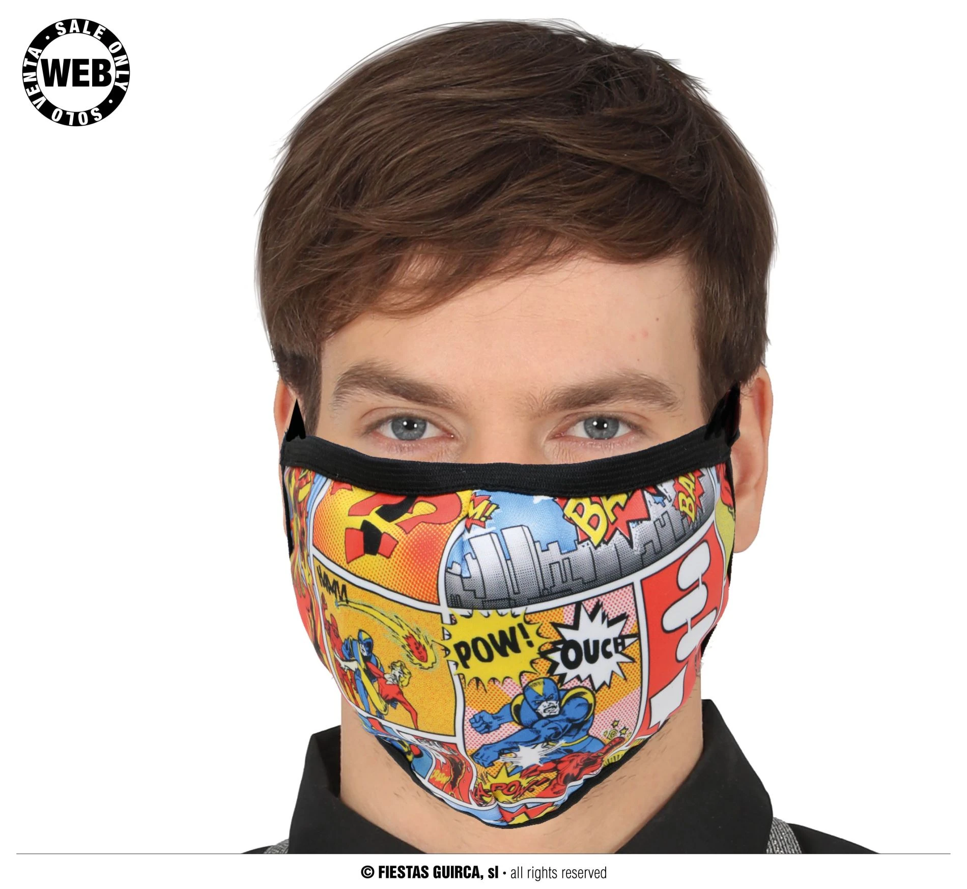 Opakovaně použitelná třívrstvá látková maska na obličej pro dospělé s motivem komiksu.