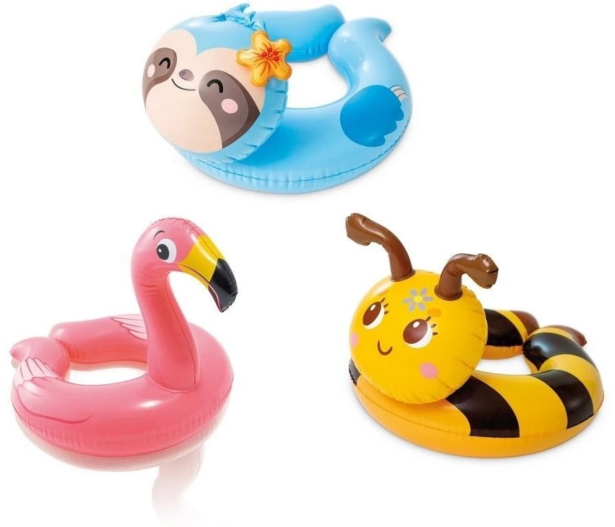 Nafukovací kruh zvířátko - mix 3 druhy (včelka, plameňák, lenochod) - 1 ks