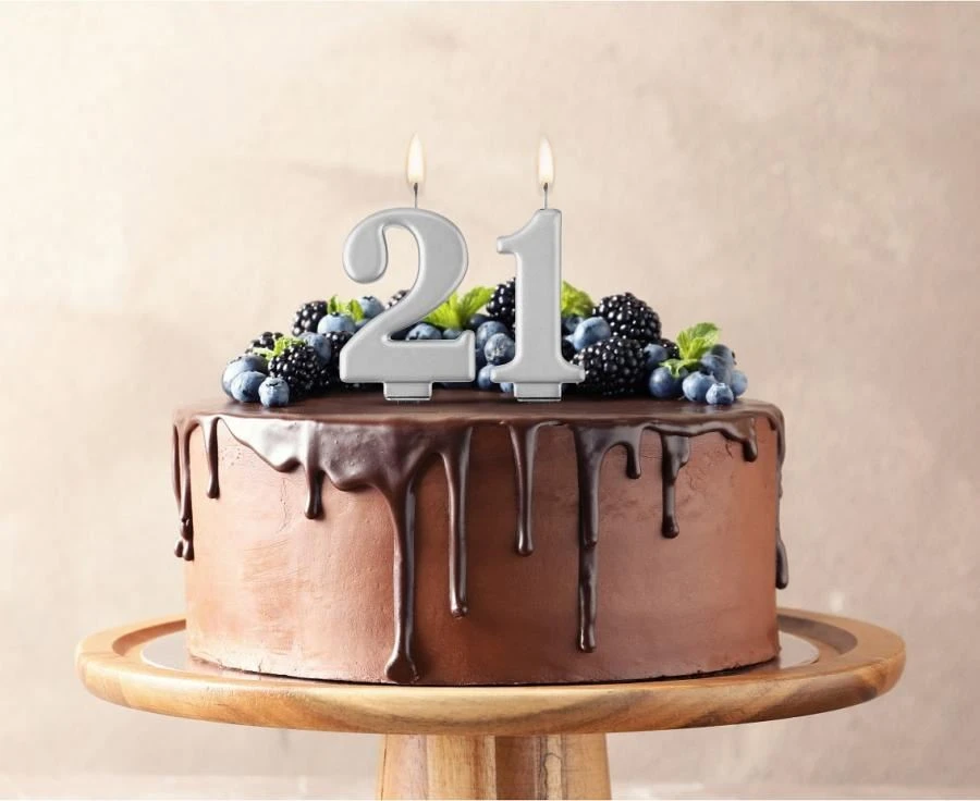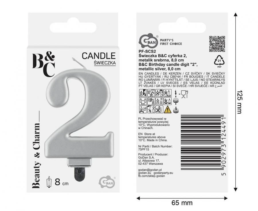 Elegantní stříbrná svíčka ve tvaru čísla 2, nesmí chybět na žádném narozeninovém dortu.