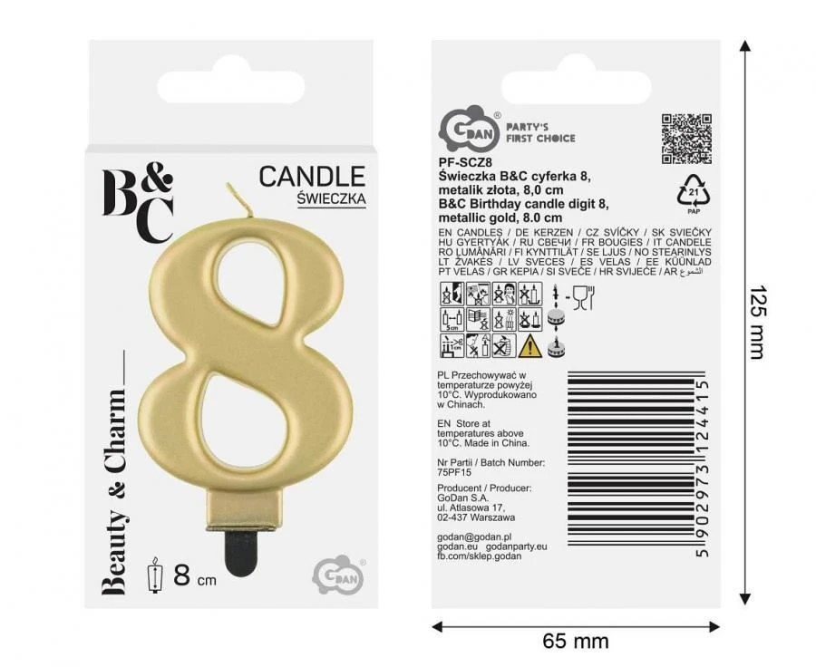 Dotaz k produktu - Narozeninová svíčka na dort - 8 - metalická zlatá - 8 cm