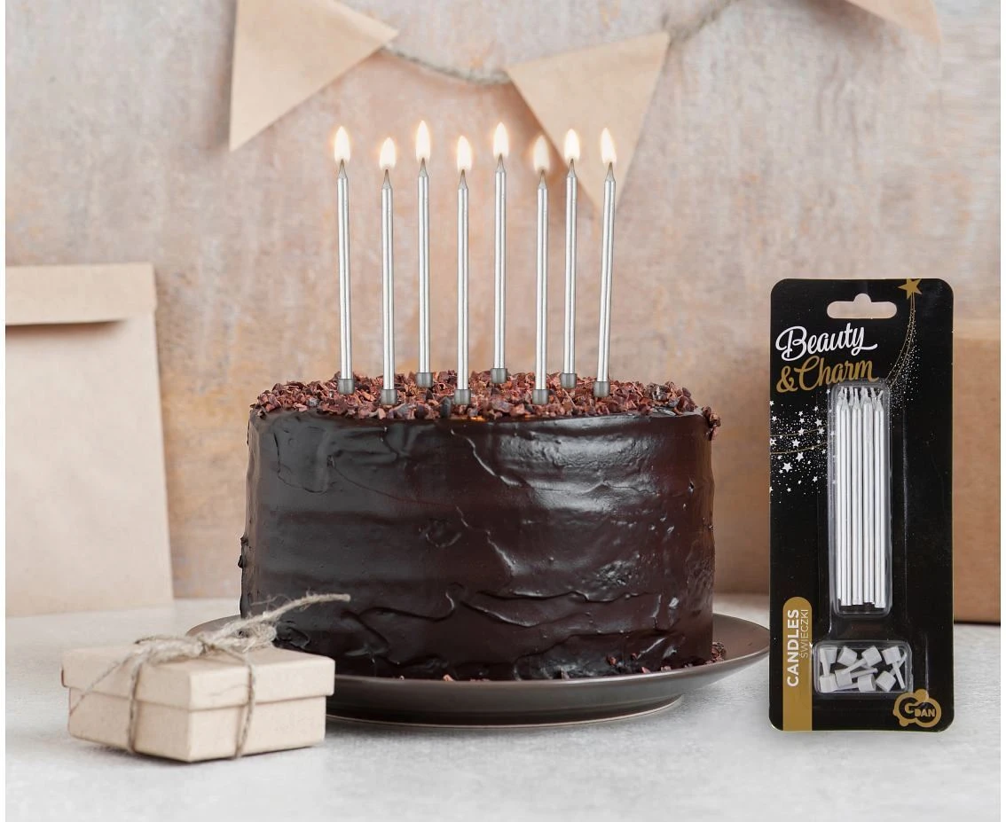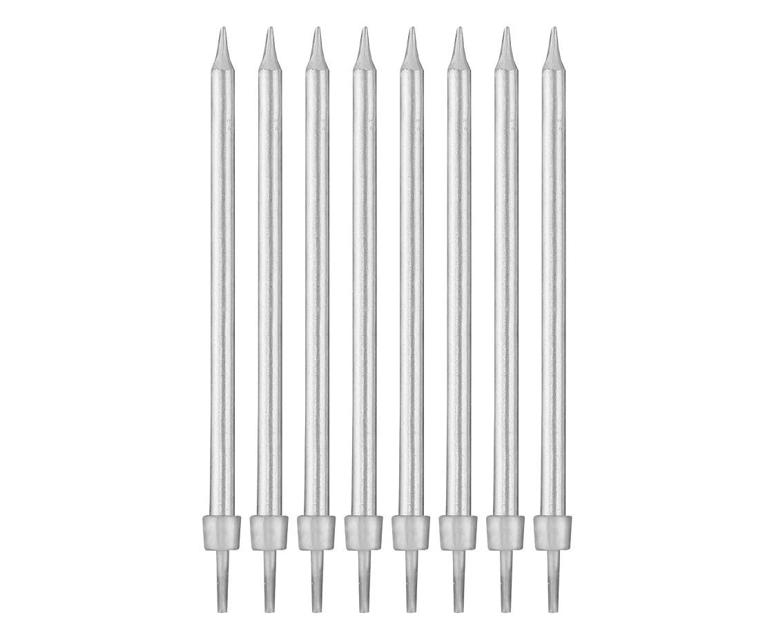 Narozeninové svíčky střibrné s podstavcemi délka - 10 cm - 8 ks