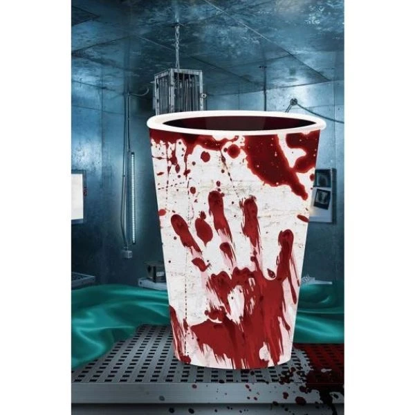Papírové kelímky s motivem krvavé otisky skvěle doplní Halloweenskou nebo Zombie párty.