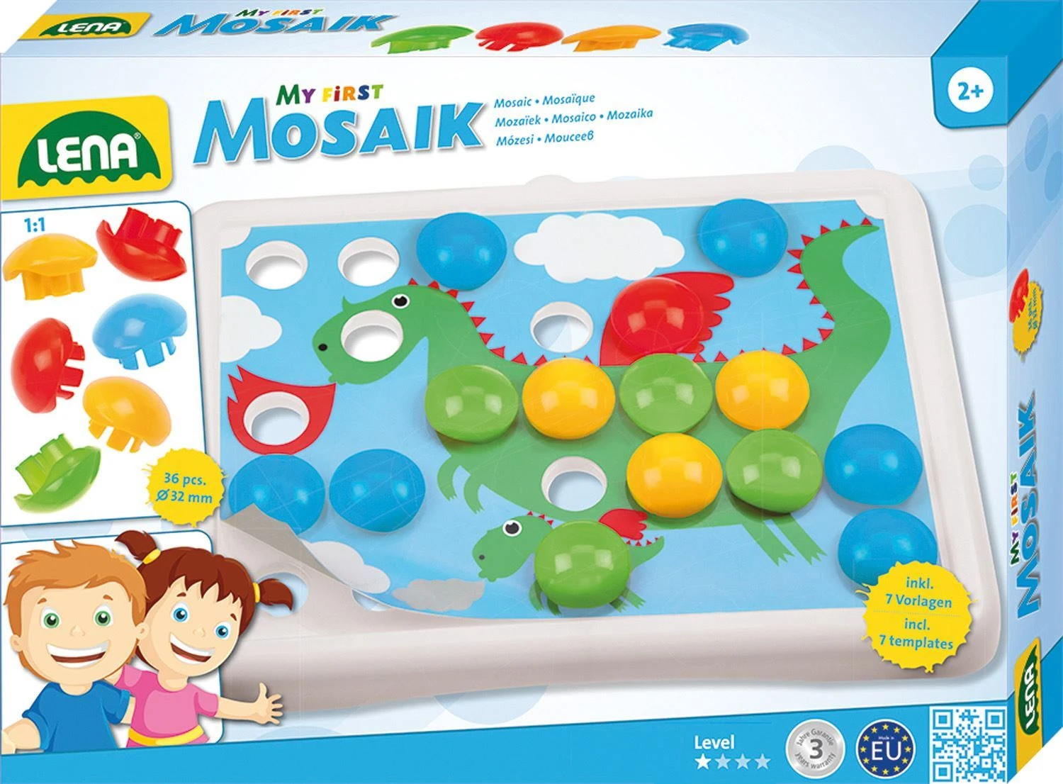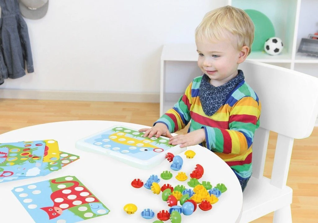 Mozaika určena nejmenším dětem. Díky velkým dírám a kolíčkům, nebudou mít