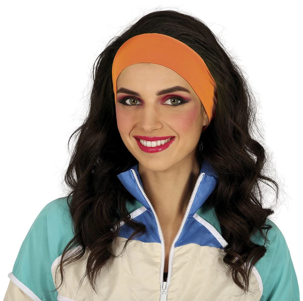 Neonová čelenka v zářivé oranžové barvě, která je ideální doplněk na retro večírky , karnevaly nebo fitness akce.