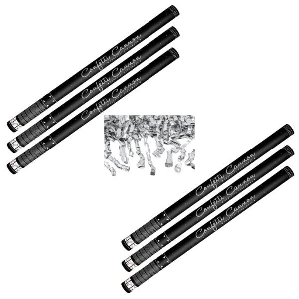 Konfety jsou uloženy ve válcovité tubě. Drží se v ruce a ovládají se mechanickým pootočením tubusu. Po vystřelení vyletí stříbrné metalické stužky do výšky 5 až 8 metrů a rozptýlí se do okolí.