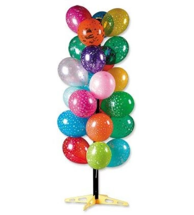 Stojan je vysoký 170 cm a má 65 otvorů pro uchycení balónků na balónkových tyčkách.