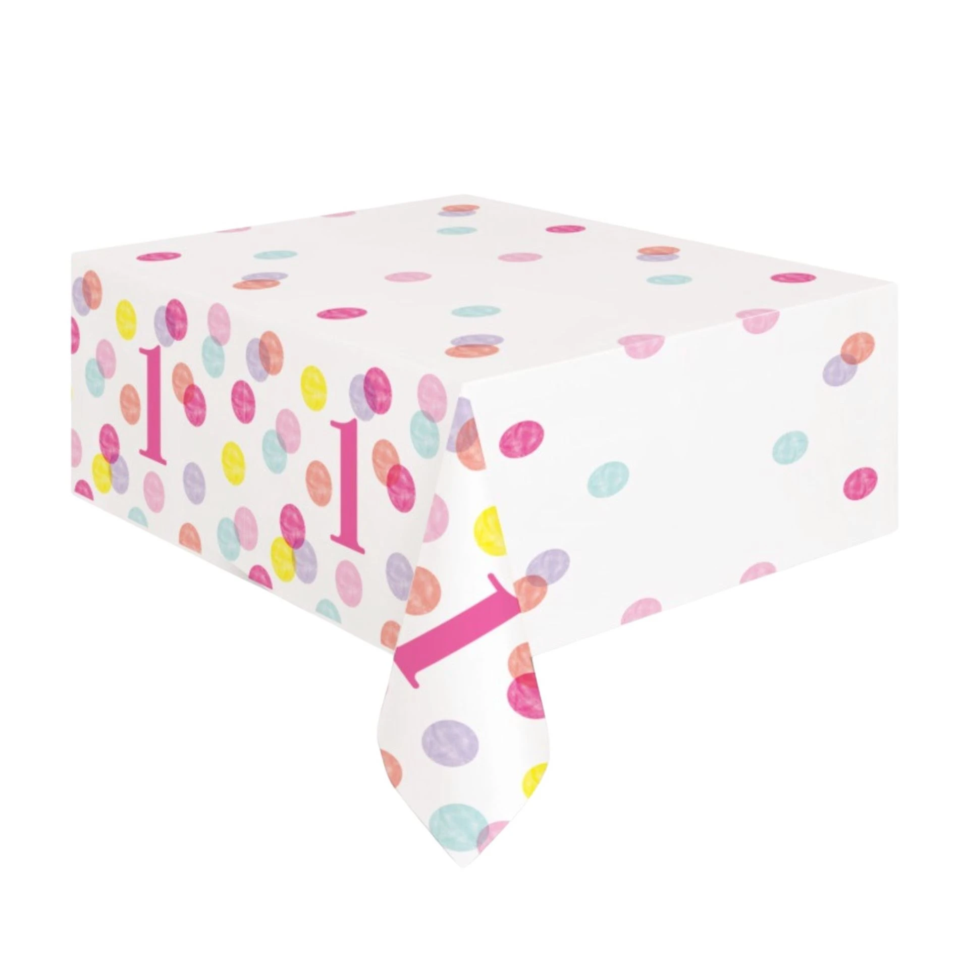 Ubrus 1. narozeniny růžový s puntíky - HOLKA - 137 x 213 cm - Happy birthday