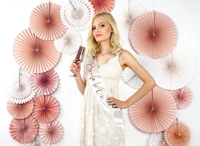 Chcete, aby budoucí nevěsta byla jasně středem pozornosti na své rozlučce se svobodou? Saténová šerpa Bride to Be v elegantní bílé barvě s růžovozlatým nápisem je dokonalým doplňkem, který jí dodá pocit výjimečnosti a slavnostní atmosféru.